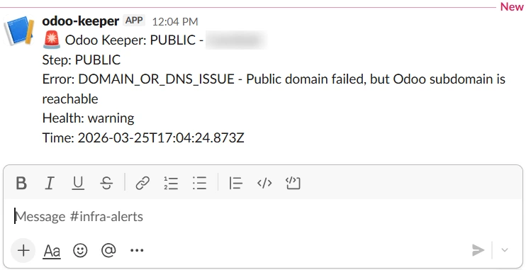 - Automated monitoring across multiple Odoo sites